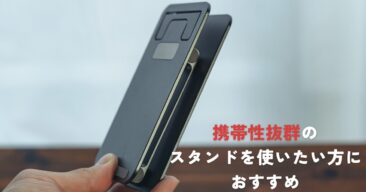 モバイルモニターは付属ケースやらスタンドでも作業できますが、どうしても角度が足りません。そんな時に、気軽に持ち運べて角度調整できるスタンドがあると便利ですよ。