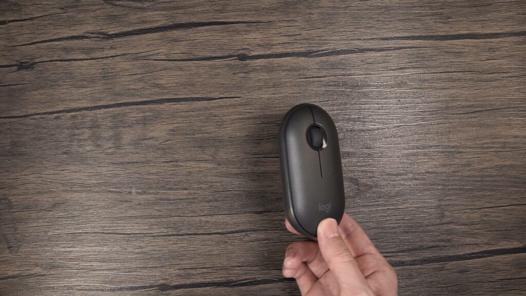 めちゃくちゃコンパクトなマウスです。先ほど紹介した無印のケースに入りますし、なんならポケットに入れても問題ないくらいコンパクト。