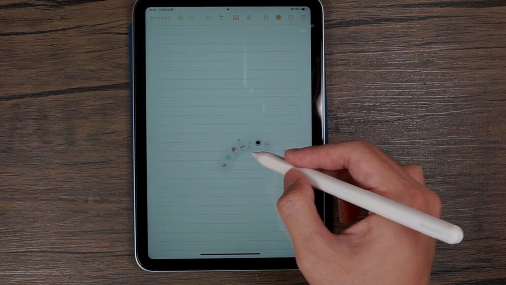 ツールの切り替えや消しゴム切り替えを全てペンシルだけで操作できてしまいます。設定を変えればショートカットも呼び出せるため、Apple Pencil 第2世代と比べて機能性が進化しすぎている。