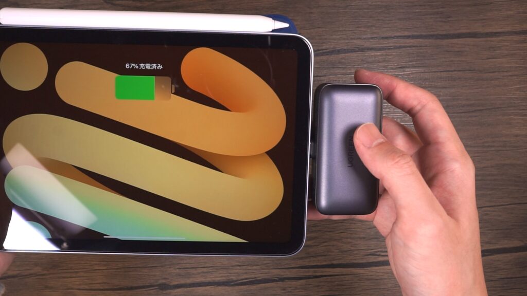 バッテリー容量は5000mAhのため、iPhone 15を1回フル充電することは可能。iPad miniのバッテリーも確か5000mAhくらいなので、ちょうどいいかと思います。急速充電に対応しているのもポイント。