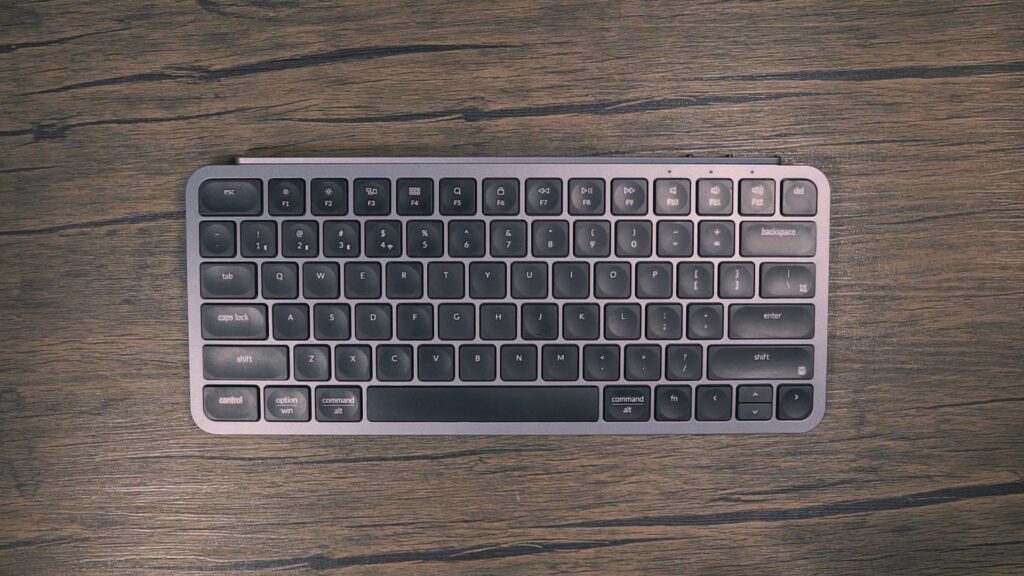 コンパクトなUS配列キーボードで、静音性が高いシザー構造を採用。重量も軽いので持ち運びやすいです。それだけなら折りたたみキーボードでもいいんですが、このキーボードはキーマッピングに対応しています。