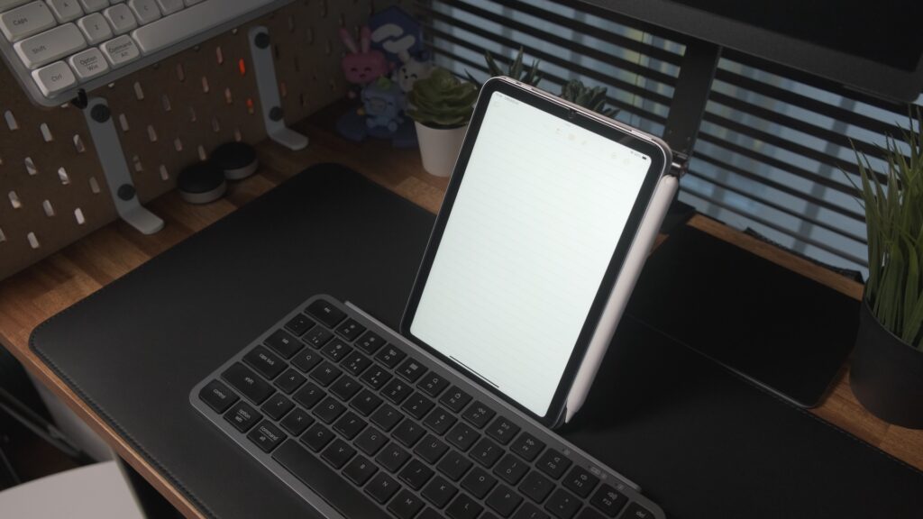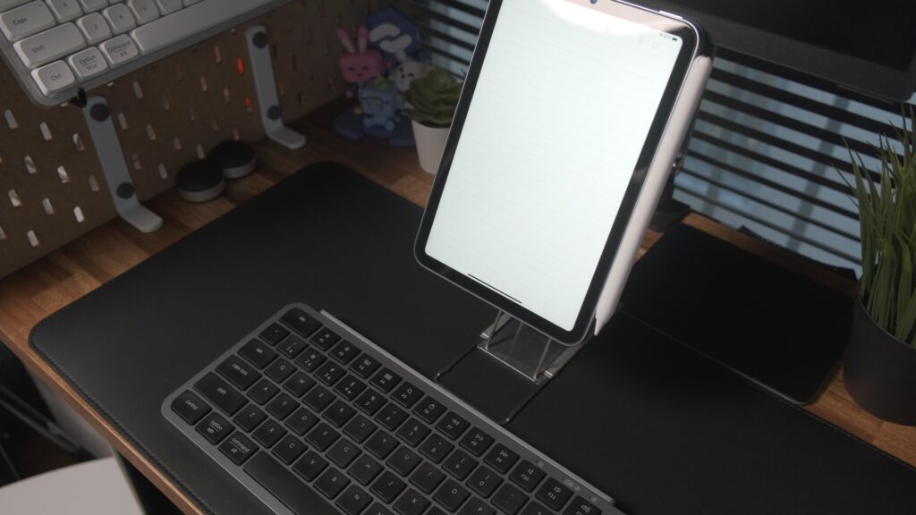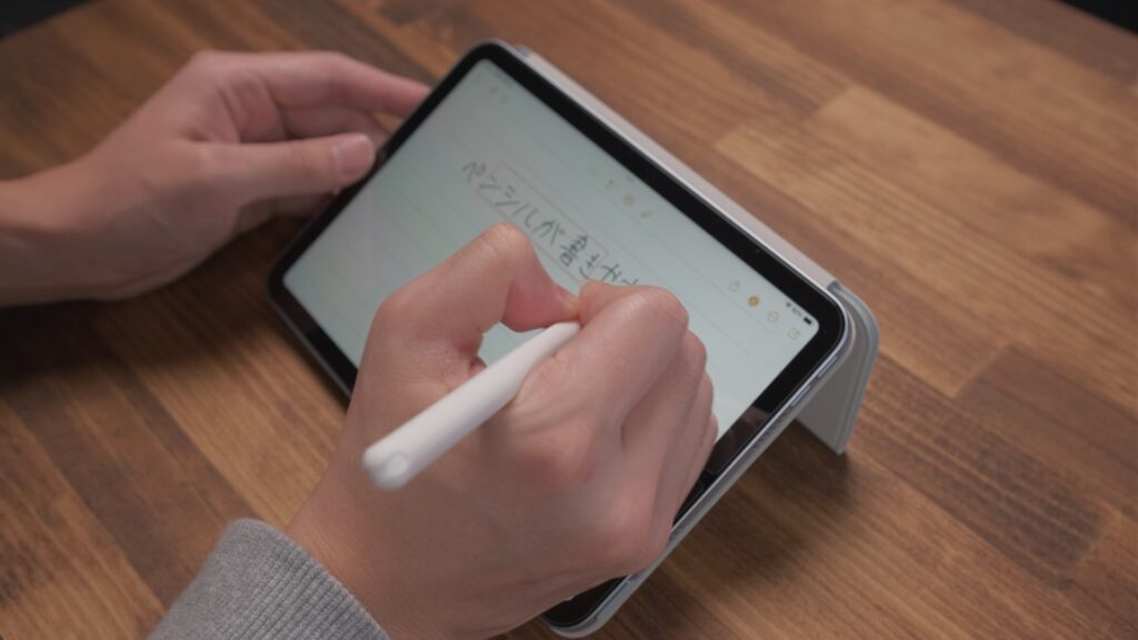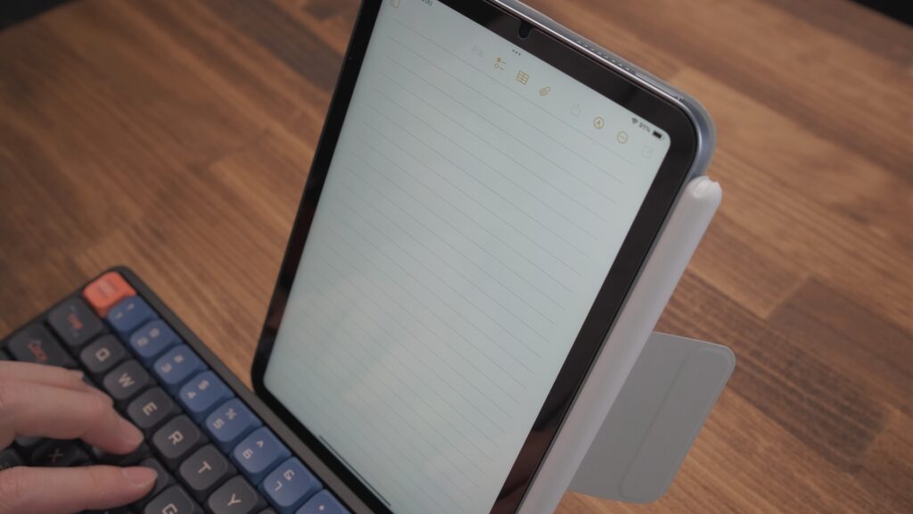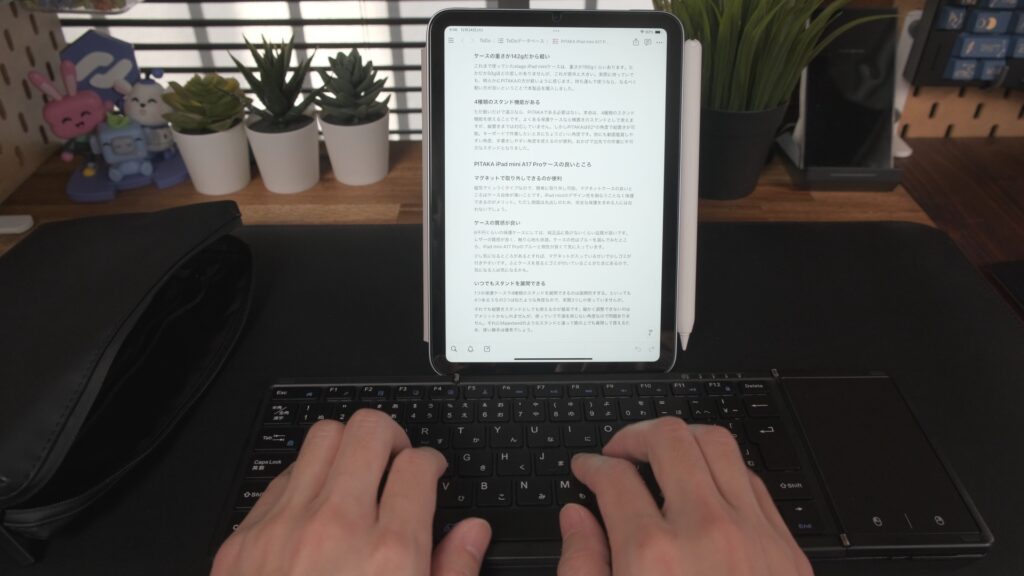 横置きで動画を見たり手書きしたり、縦置きにすればテキスト入力や読書も捗る。iPad miniの使い勝手が爆上がりするので、かなりおすすめできます。