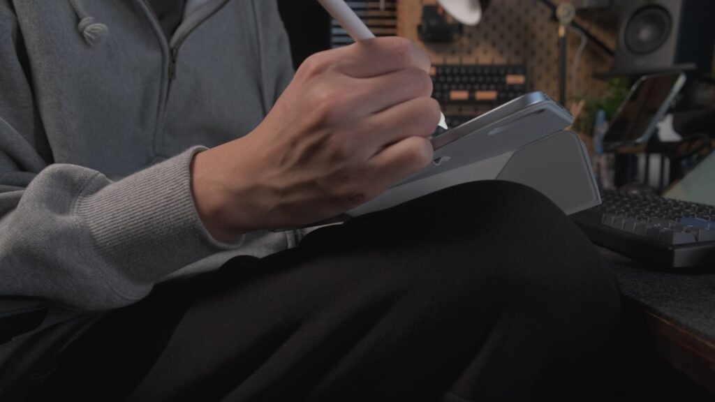 それにMajextandのようなスタンドと違って膝の上でも展開して使えるため、使い勝手は優秀でしょう。