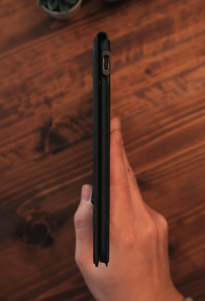 スリムなデザインなので、カバンに入れやすいのがメリットですが、折りたたみキーボードほどコンパクトではありません。