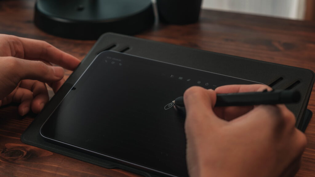 Apple Pencilでのメモ取りやイラスト制作時も、15°の角度が絶妙にフィットします。