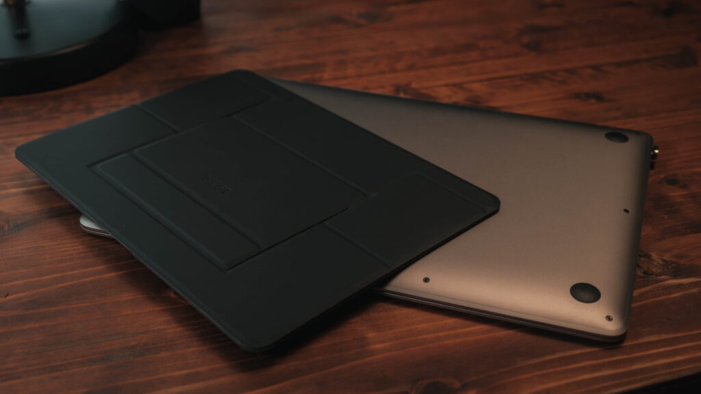 MacBook本体と一緒にカバンに入れても、厚みを感じさせない設計。カフェやコワーキングスペースなど、外出先での作業が多い方には特におすすめです。