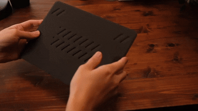 従来のMOFT粘着タイプは、ノートPCの背面に貼り付けて常時装着する仕様でした。