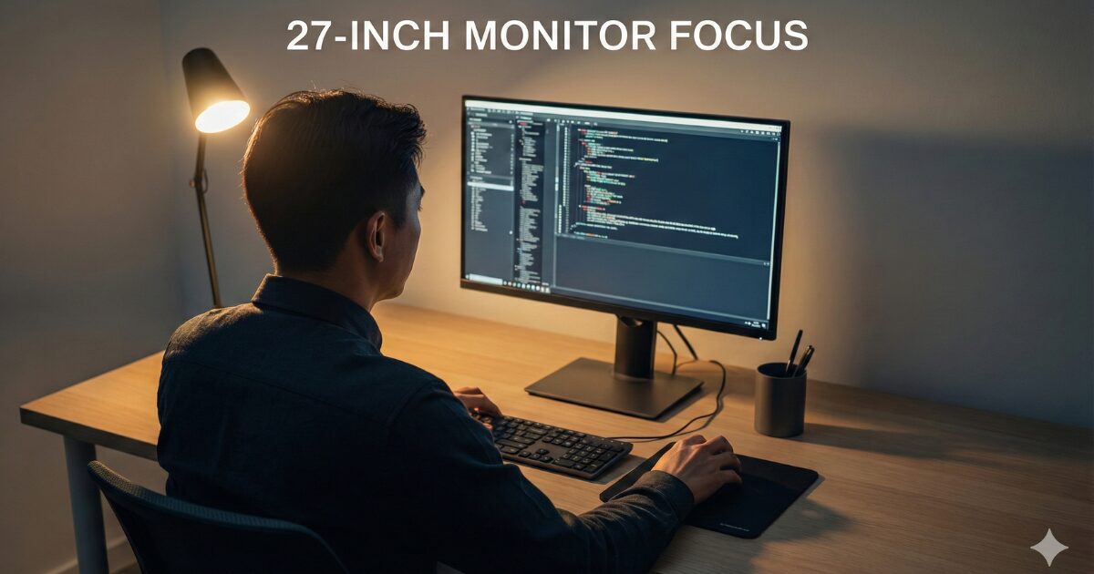 27インチモニターの魅力は、その「洗練された万能さ」にあります。大きすぎず小さすぎず、視界にすっぽりと収まるこのサイズは、シングルタスクへの圧倒的な没入感をもたらしてくれました。