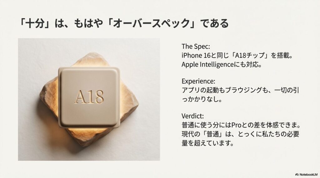 そう、大半の人にとって、スマホの処理性能はもう「十分」なんだと思います。