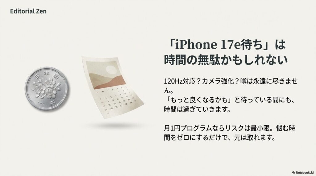 以前の私なら、「じゃあ17eまで待とうかな」と考えていたでしょう。でも今は、そういう思考回路自体を疑っています。