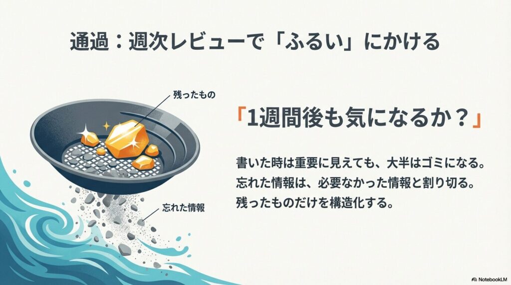 通過:週次レビュー──「ふるいにかける」