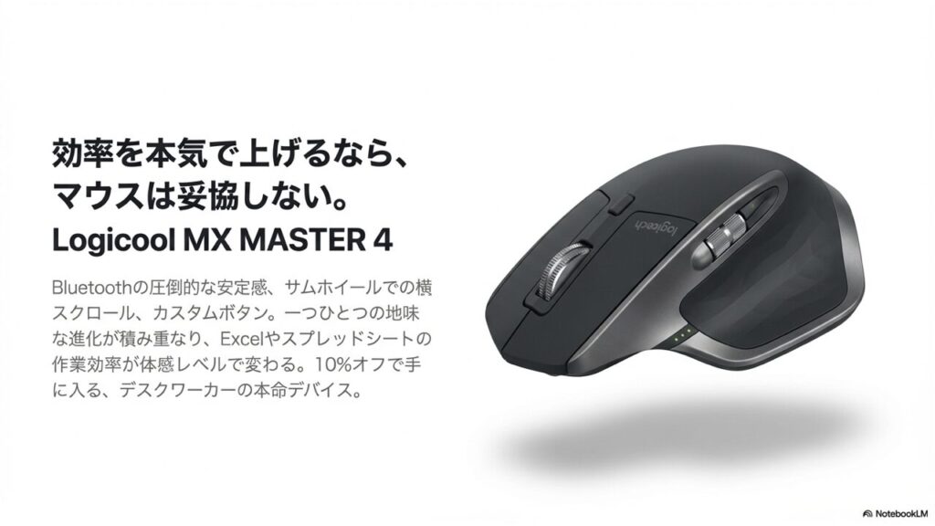 フラッグシップの最新モデル「MX MASTER 4」が、早くもセールで10%オフになっています。