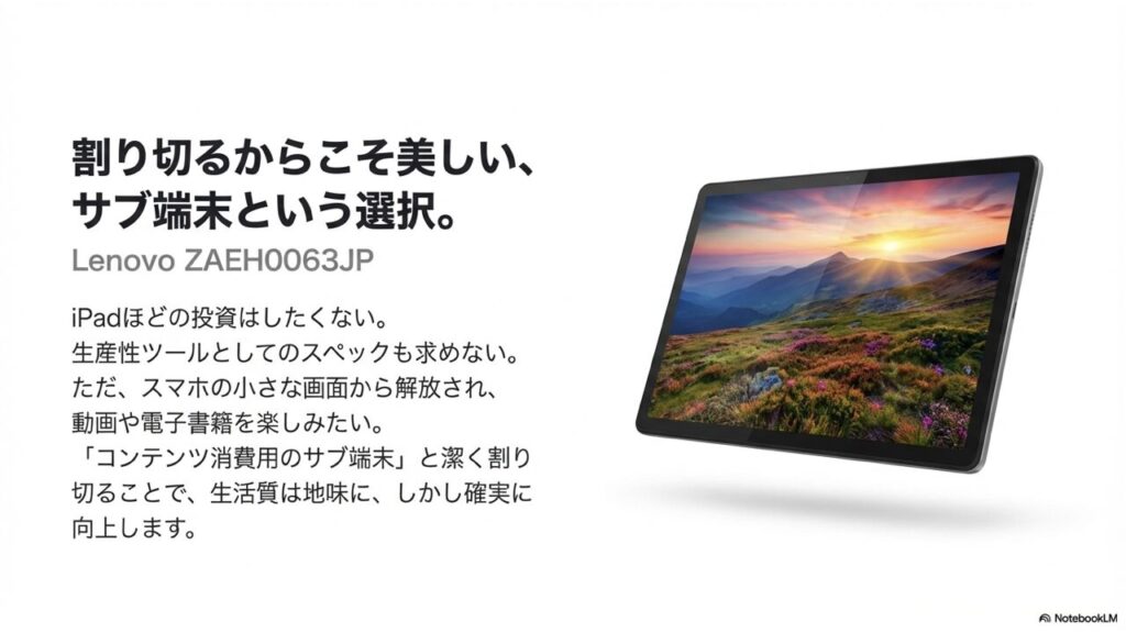 iPadほどの投資はしたくないけれど、動画視聴や電子書籍用にタブレットが欲しい。そういう方には、Lenovoのタブレットが選択肢に入ります。