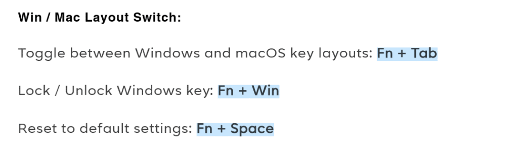 もう一つ注意点ですが、WindowsとMacのレイアウトを切り替えるには「Fn+Tab」を5秒長押ししないといけません。