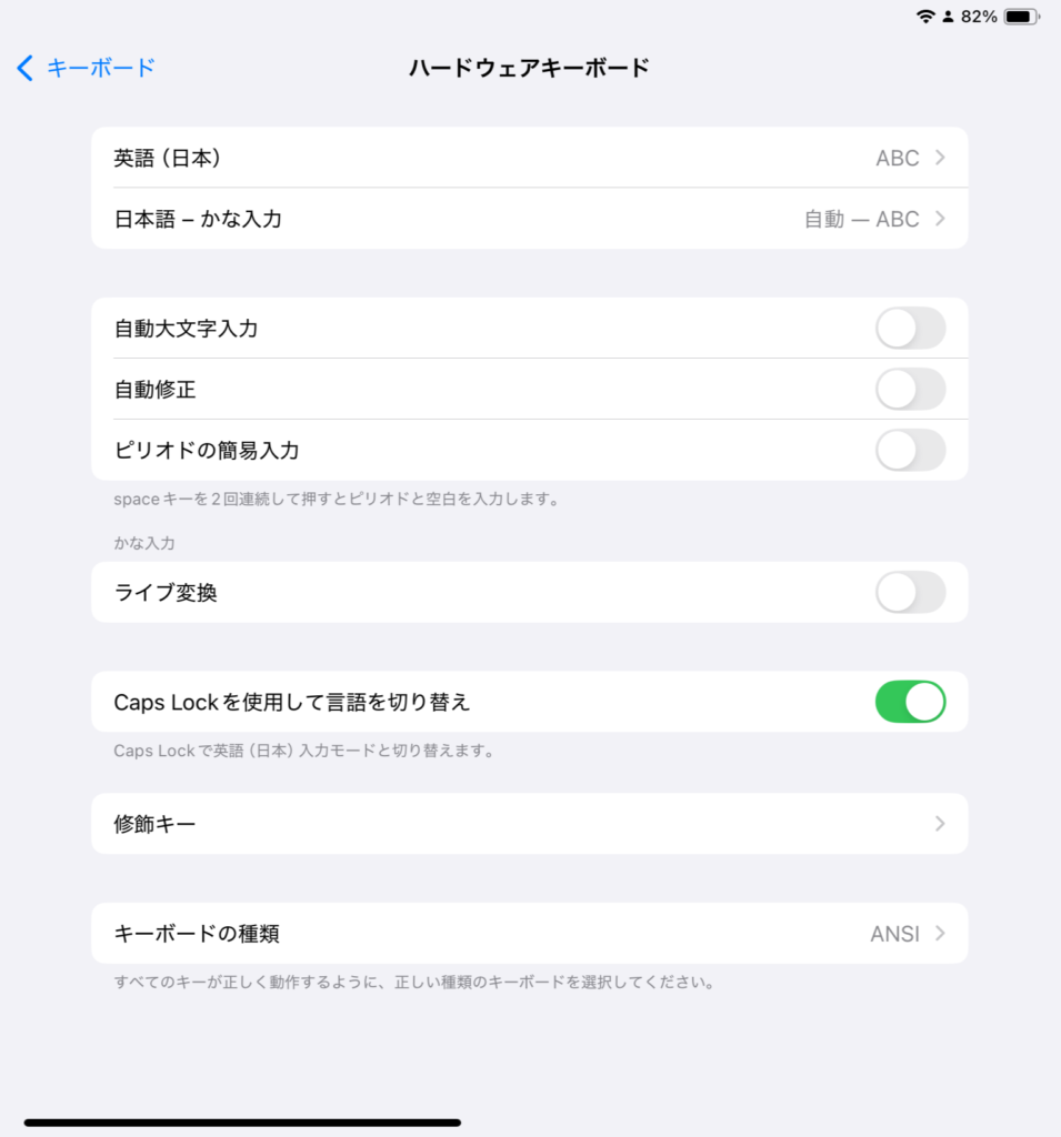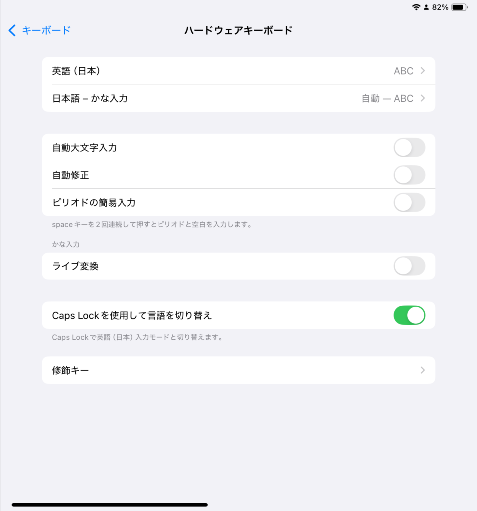 不具合の可能性が高いですが、iPadにLofree Flow Lite JISを接続すると、日本語配列として認識されず英語配列になるようです。しかも、設定で日本語配列に変更できないという。