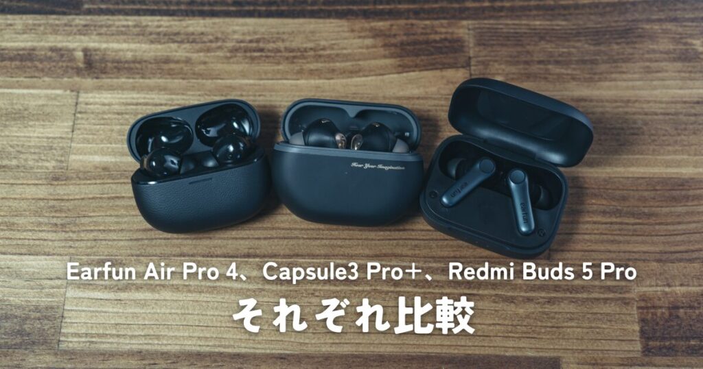 どれがコスパ最強?Earfun Air Pro 4とCapsule3 Pro+とRedmi Buds 5 Proを比較